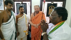 Om Namo Narayanaya! Namaskarams and welcome to Ambal’s special place on this Boologam, Shri Dasamahavidya Moksha Sthalam with Shri Rajamathangi as the Samrajadhayini. Moksha Pradayini for all devotees is the prime objective of this Moksha Sthalam and HH Pujyasri Narayana Theerth swamigal will show the way for . The temple is located in the Bharatha Punya Bhoomi, in Arakkonam village, about 80 Kms from Chennai. The temple was constructed by His Holiness, Anantashree Vibhushit Swami Narayana Theerth, Sankaracharya of the Kalikamba peeth, Gangotri. He is from the pristine, unbroken and authentic order of the Sankaracharya tradition that was established by Sri AdiSankara Bhagavatpaada himself. Swamiji got his initiation into the holy Sanyasa order from His Holiness Anantasri Swami Niranjana Dev Teerth, the Shankaracharya of Govardhana Peeth, Puri, in the year 1976, on the Mahashivaratri day. Swamiji has been a true disciple of His Holiness Anantasri Abhinava Vidya Teertha Mahaswamin, whom he held with deep veneration, love and respect as a living God on earth.